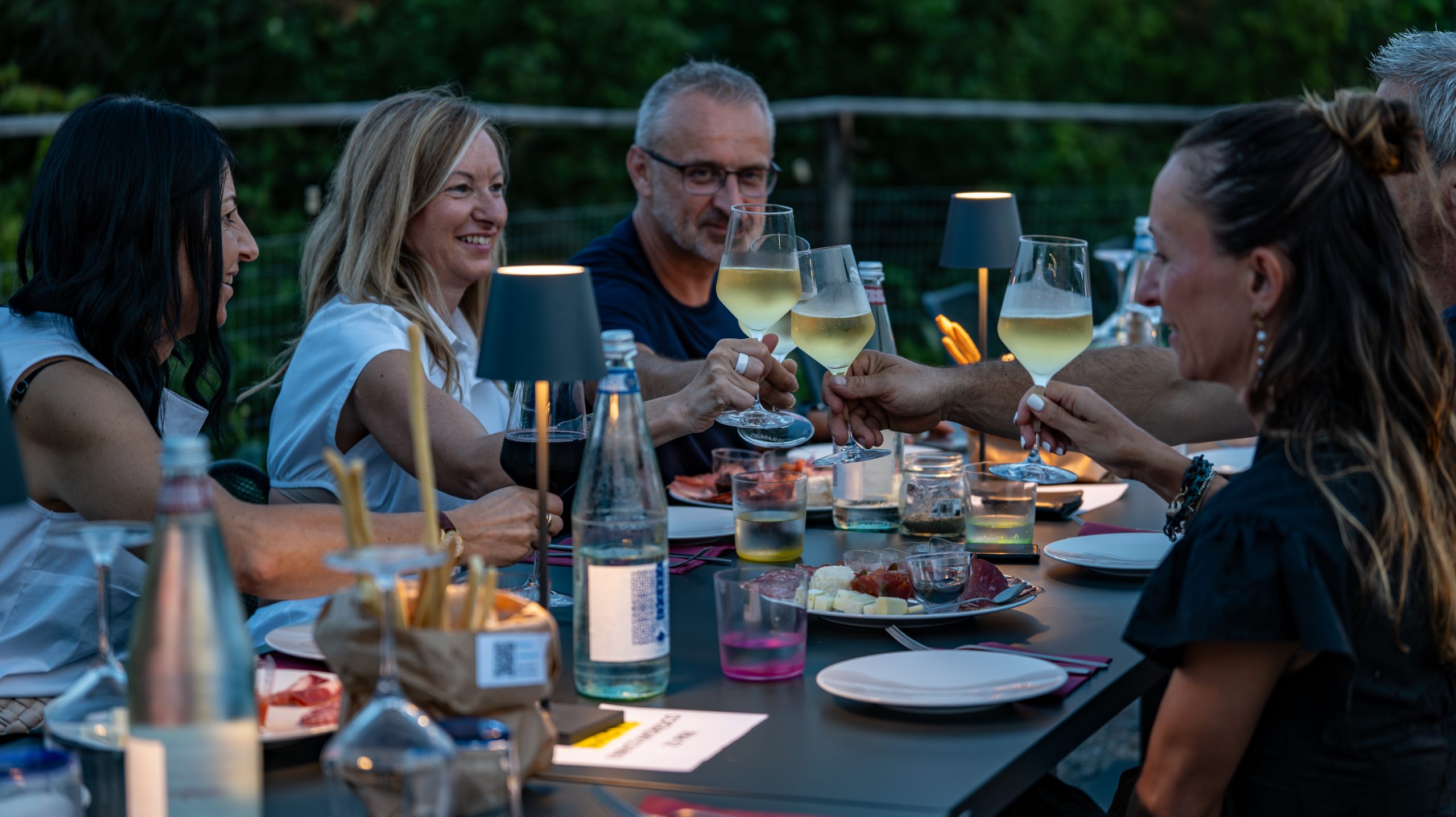 Dalle cene conviviali ai piedi delle vigne, fino al relax del post-serata tra morbidi puff e tavolini bassi per chiacchierare sotto il cielo stellato.